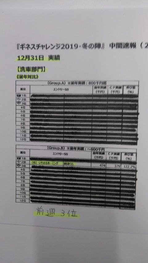 年末は30日の雨予報で29日、30日と予約のお客様の洗車が中心で、飛び込みの洗車をなかなか取ることができませんでした。ゆえにギネスチャレンジも厳しいかなと思っておりましたが、結果を見てビックリ‼