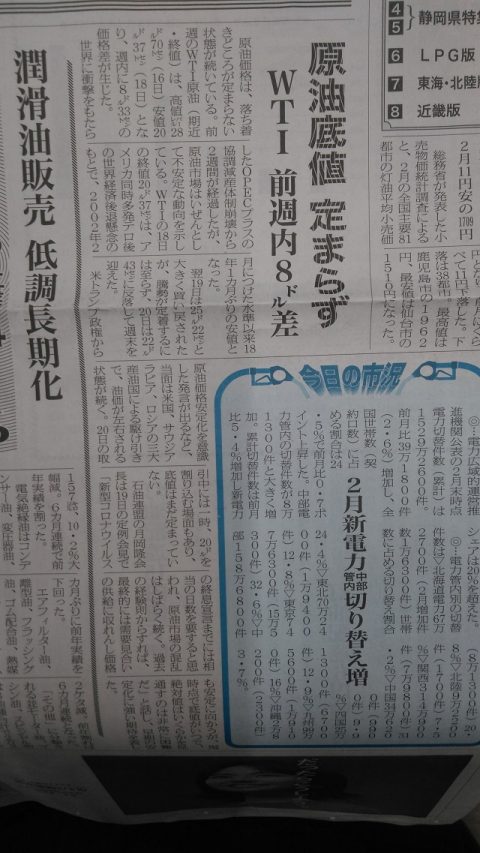 新型コロナウイルスの影響で外へ出掛けることが少なくなっている状況はガソリン業界でも出てきており、SSの販売量は昨年対比15%~20%減との話が出ております。弊社SSも例に漏れず、減少傾向と厳しい状況ではあります。