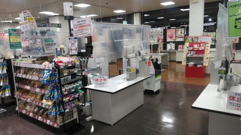 今週より弊社と同じグループのスーパー富士屋のレジ廻りに新型コロナウィルス対策でフィルムを設置しております。