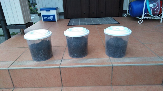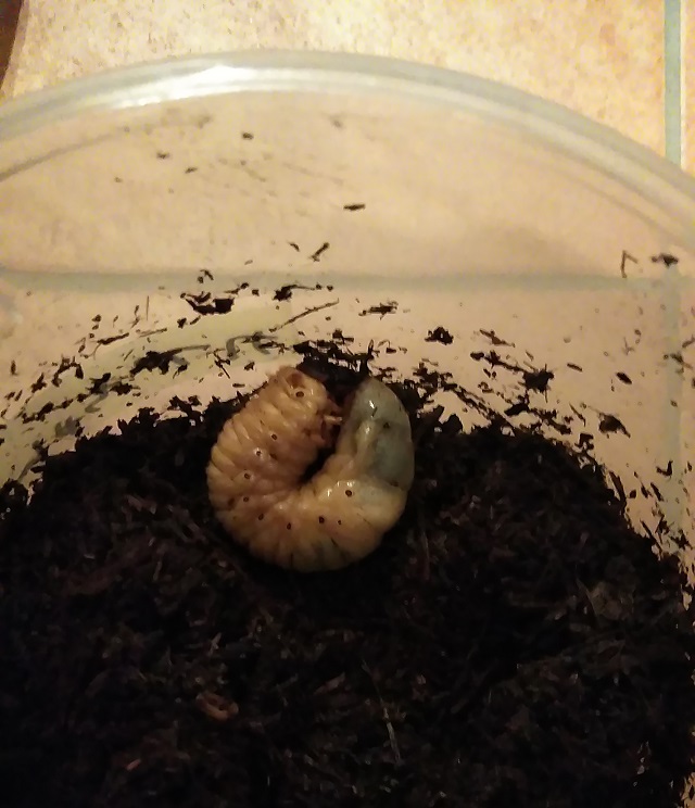ただやはり一筋縄ではいきません。購入した翌日、1匹が土の上に出て来ていました。ネットで調べてみると(今はこれができるから便利ですよね)土になんらかのトラブルがあると土の上に出てくるとのこと。幼虫を購入した際、腐葉土も一緒に購入し、漬物用のケースにその腐葉土を湿らせて入れ、それぞれの幼虫を放しました。放したら3匹ともすぐに腐葉土に潜っていったので問題ないかとおもっていましたらこの事態。まだ捨てずに取ってあった購入した時に幼虫と一緒に容器に入っていた土(幼虫のフンがいっぱいでしたが)を先ほど申しました腐葉土に混ぜて様子をみることに。翌日もその幼虫は土の上に出てきたり、潜ったりを繰り返していましたが、その後、潜ったっきりに。土に中では動いている様子なので、これで大丈夫かと。