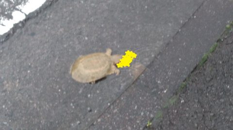 子供の頃、スッポンに噛みつかれるとカミナリが鳴るまで離れないなんて言った覚えがありますが、昨晩の大雨でカミナリにでも打たれたのでしょうか(カミナリが鳴っていたかは不明ですが)?