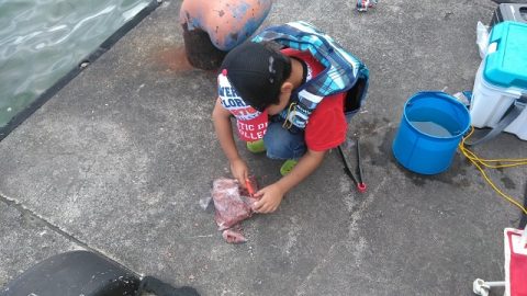 子供は釣りを始めて2年目。サビキ釣りのエサならなんとか自分で入れることができるようになりました。
