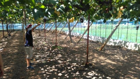 入口でお婆さんに「悪いけど、終了だよ」と言われ帰ることに、明日なら大丈夫か聞いてみようと若奥さんへ話をすると「ブドウはすぐ育つものではないので、今日はないけど明日なら、とはならない」とのこと。しょうがないなぁとあきらめかけた時、「ひと房、ふた房ならいいですよ」と声をかけてもらい、農園へ入れてもらいました。