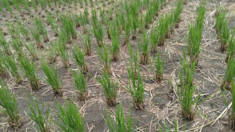 この葉っぱは”ひこばえ(孫生え)”と呼ばれるそうで、やはりそのままにしておくと稲穂になるそうです。ただ、この稲穂から取れる米は美味しくないそうで、普通はあまり育たないうちにトラクター等で土に混ぜてしまうそうです。