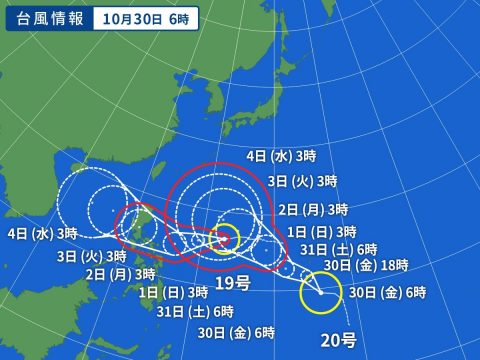 昨晩、台風20号が発生したそうです。現在19号もあり、19号は西の方へ向かって進んでいるようです。20号の今後の進路も気になるところです。