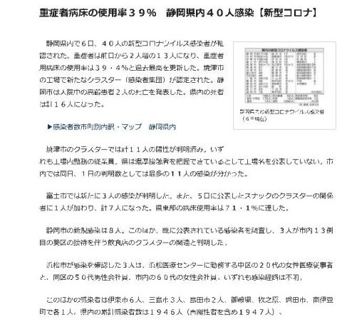 昨日ニュースで焼津市の工場でクラスターが…との報道がありました。