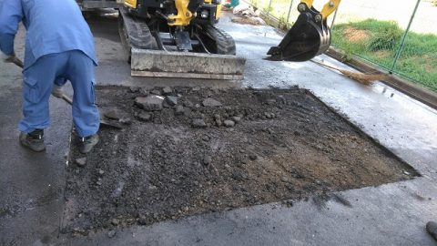デメリットとしましては、オーバーレイに比べてお金がかかり、工期も多少長くなります。ただメリットとしましては、施工後の耐久性に優れており、大型車の行き来や車の往来の激しい場所でもすぐに掘れたり、凹んだりしません。