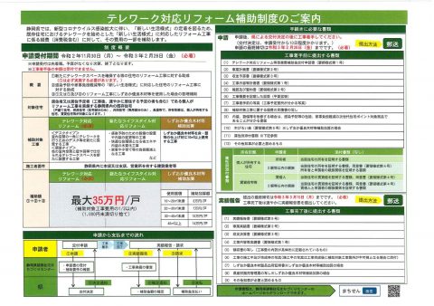 なお、助成制度には期限があります。ご興味のある方は早めにいちまるホーミング迄お問い合わせください。いろいろとお手伝いさせていただきます。