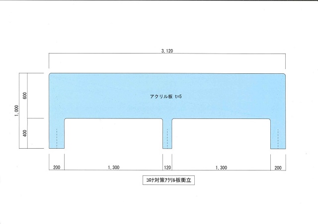実際に設置させていただきますと3mを1.5m×2台にさせていただいたとはいえ結構大きいものでしたが、この大きさがあれば飛沫感染防止にも役立つと思っております。