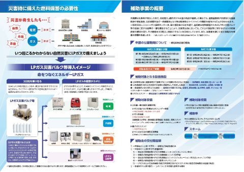 今回ご紹介させていただく補助金はここ数年エルピーガス振興センターから募集が出ております「災害時に備えた社会的重要インフラへの自衛的な燃料備蓄の推進事業費補助金・LP災害バルク等」というものです。