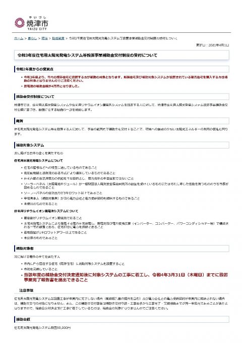 焼津市でも太陽光発電、蓄電池、エネファームの補助金の募集が始まりました。詳しくは弊社社長の”社長のぼやき”ブログ4月1日掲載分の”新年度開始”をご覧ください。