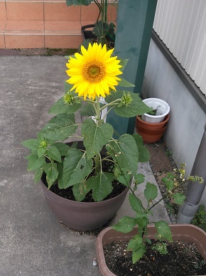 我が家では去年会社の方にいただいたミニひまわりの種から育った2代目が咲きました。