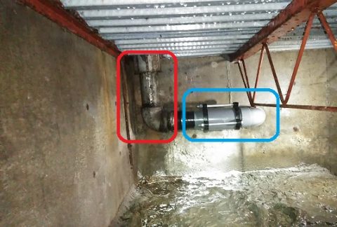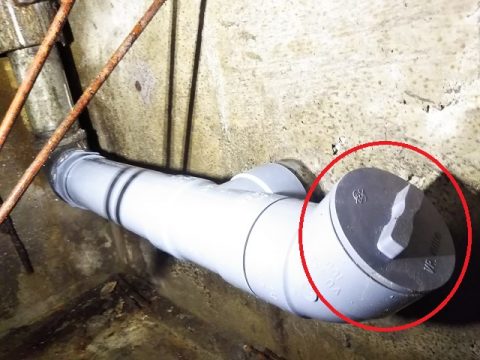 今後、床下から配管内をメンテナンスできるように、赤枠のような蓋つきの接続管にさせてもらいました。これで今後の配管内のチェック、洗浄は簡単になります。