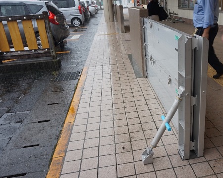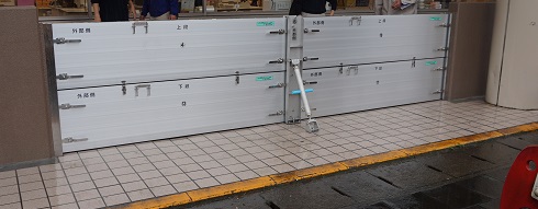 いちまるグループでは一昨年の台風時に浸水被害にあった富士屋田尻北店では浸水被害が想定される場合、事前に店全体を止水板で覆えるように対策しました。