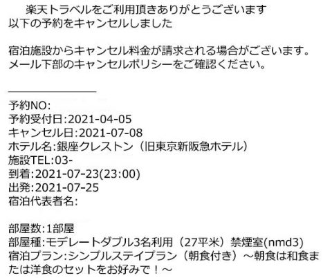 チケットが当たり、コロナ禍での心配はあったものの観戦に行くのを楽しみにしておりました。連休と週末を絡めて東京で2泊する予定でホテルも予約していたのですが、昨晩キャンセルしました。