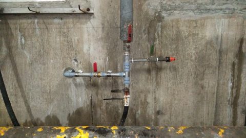 お客様より既存の水道管を分岐して、壁を貫通させて隣の部屋にも水道管を通して欲しいとの依頼をいただきました。