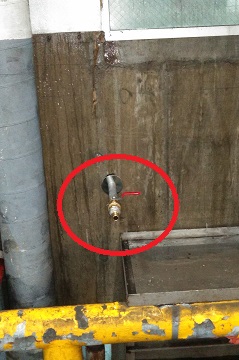 既存の水道管を分岐し、分岐した1本を壁穴を通し隣の部屋へ。