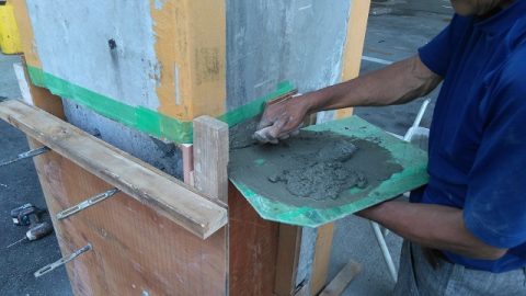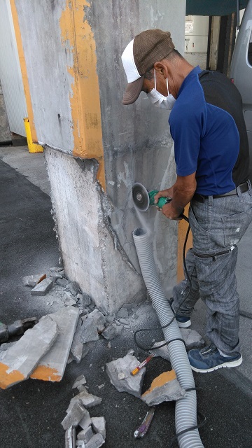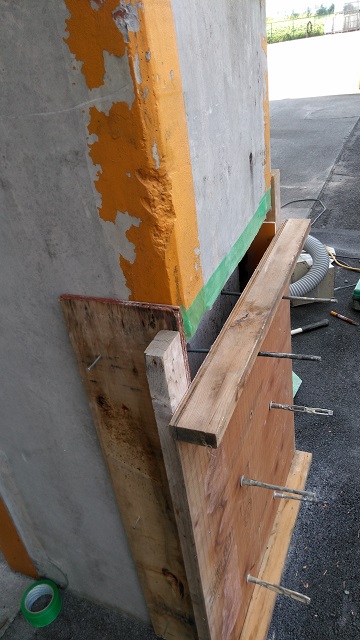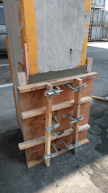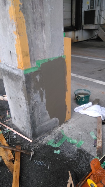 今回のように柱が損傷するのであれば、モルタルより強度の強いコンクリートを使用した方が良いということになり、お客様に説明し、コンクリートで施工することとなりました。