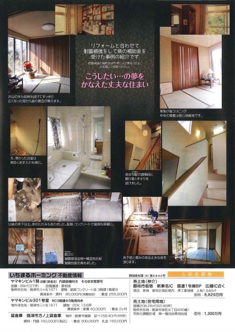 裏面は、リフォームと合わせて、耐震補強をして県の補助金を受けた事例の紹介です(*^_^*)