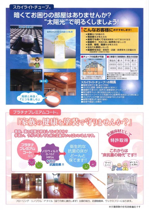 「スカイライトチューブ」・「プラチナプレミアムコート」の案内です。
