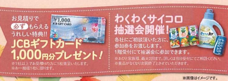 お見積りで JCBギフトカード 1000円分 ブレゼント!!