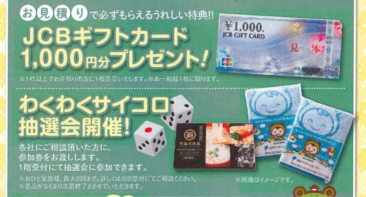 お見積りで JCBギフトカード 1000円分 ブレゼント!!