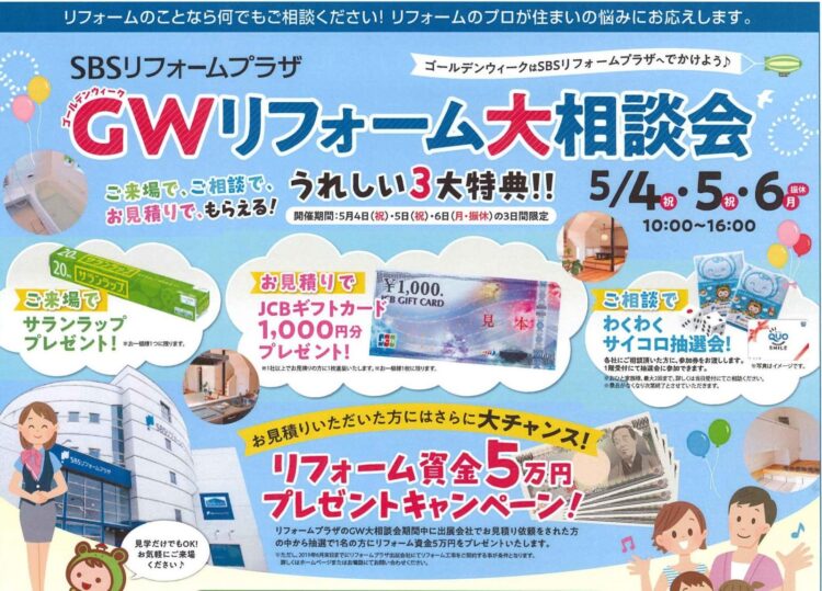 5月4日(土曜日)~6日(祝・月曜日)は ゴールデンウィーク リフォーム大相談会開催です