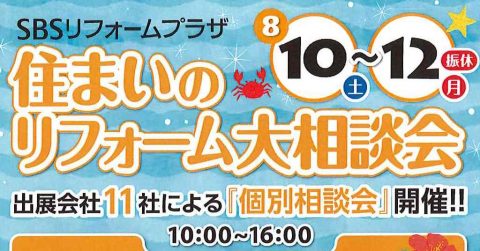 8月10日(土曜日)~12日(振休・月曜日)は 住まいのリフォーム大相談会開催です