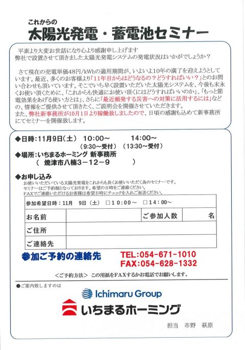 これからの太陽光発電・蓄電池災害時対策セミナーを開催します!