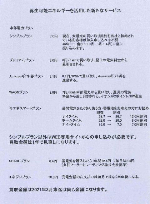 その他にも、イオン・エネジン等いろんなところが、買取価格を発表しています。