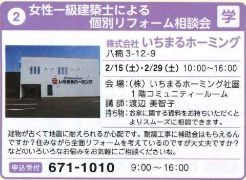2020年2月15日(土)は、女性一級建築士による個別リフォーム相談会開催です!!