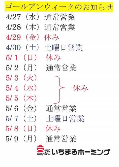 お知らせ・イベント情報 ゴールデンウィークのお知らせです 2016年4月26日(火) ゴールデンウィークのお知らせです♪ よろしくお願いいたします。 前へ一覧へ次へ 最新記事 2022年4月1日(金) 2022年5月7日(土)は、女性一級建築士による個別リフォーム相談会開催です!! 2022年3月14日(月) 3月20日(日)は、女性一級建築士による個別リフォーム相談会開催です!! 2022年3月4日(金) 2022年4月2日(土)は、女性一級建築士による個別リフォーム相談会開催です!! 一覧へ カテゴリー別 イベント情報 お知らせ その他 カレンダー 2025年12月 日 月 火 水 木 金 土 « 4月 123456 78910111213 14151617181920 21222324252627 28293031 月別アーカイブ ブログ一覧 お知らせ・イベント情報 エネルギー事業 リフォーム 不動産 店舗・工場・事務所